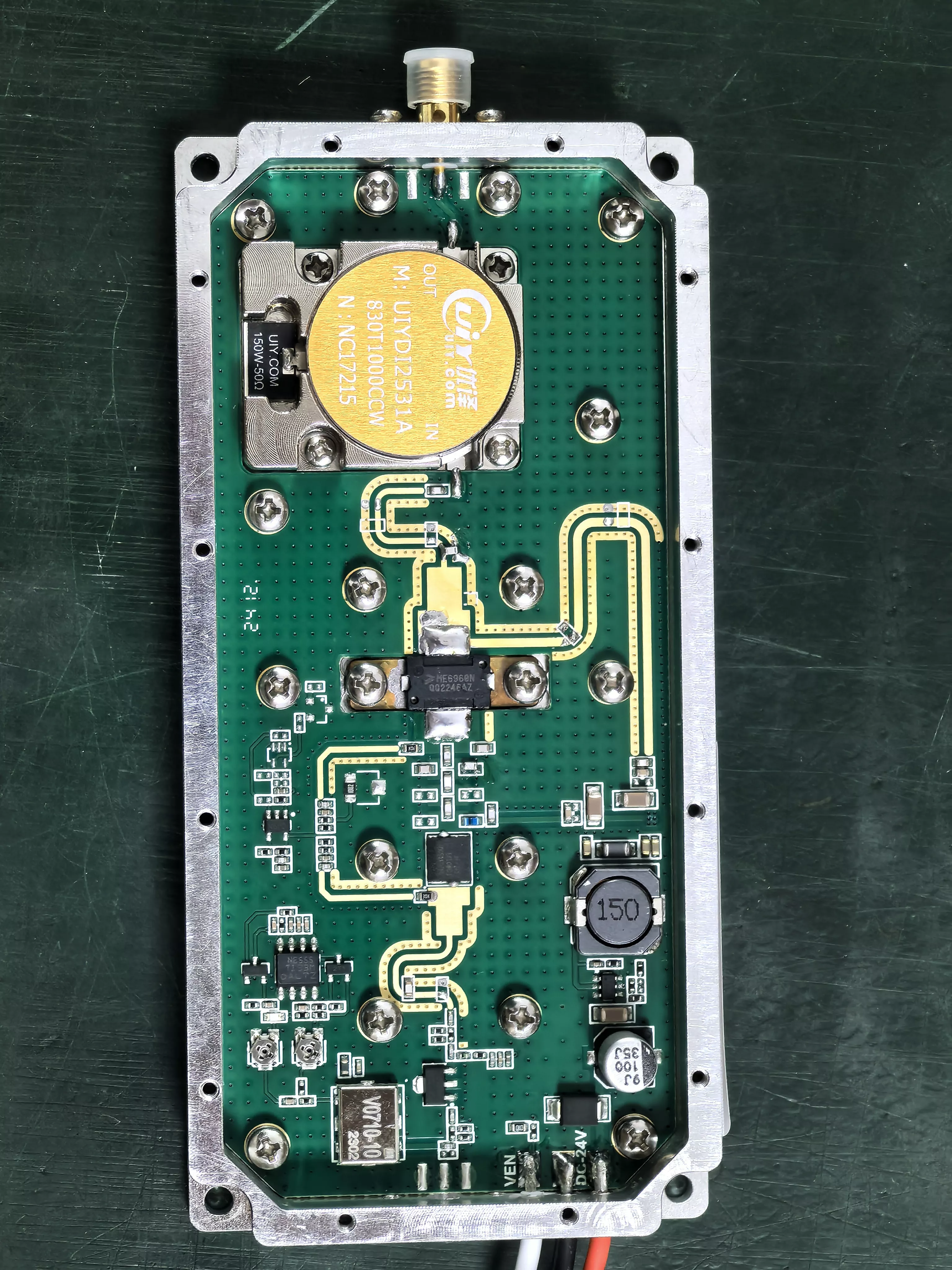 Прилагођени 50В ЛДМОС модул за ометање сигнала са циркулатором је специјализовани бежични инфо-безбедносни модул за сигнале од 2400-2485МХз. Његова висока просечна излазна снага ефикасно омета релевантне бежичне сигнале. Циркулатор одваја појачало од антене, обезбеђујући једносмерни ток РФ сигнала од појачала до антене, одржавајући стабилан и поуздан рад. ТеКсин, дај приоритет квалитету и купцима. Срдачно поздрављамо ваш контакт путем писама, позива или посета на лицу места ради пословне сарадње. Обећавамо доследне врхунске услуге.
