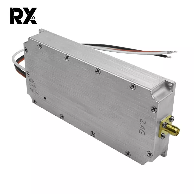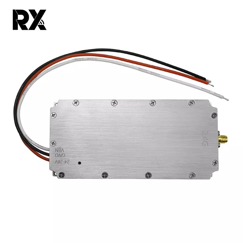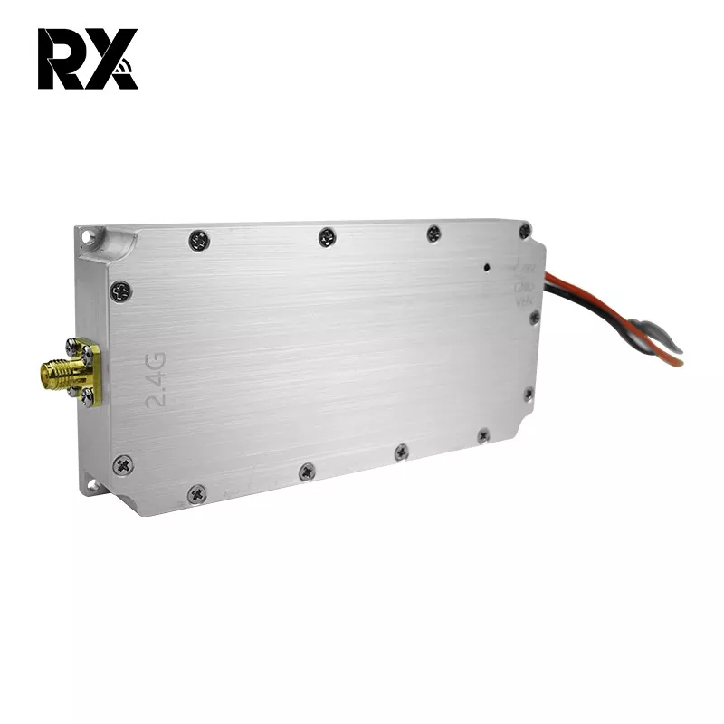 Овај 2.4Г 50В ометач сигнала модул за дрон, са излазном снагом од 50В, може да генерише јаке РФ сигнале. Покривајући фреквентни опсег од 2400 - 2485 МХз, који беспилотне летелице обично користе за комуникацију, контролу, даљинске сигнале, пренос слике и сателитске функције, његов моћни излаз од 50 В омогућава сигналима ометања да надјачају легитимне сигнале дронова. Сходно томе, то ефективно ремети нормалан рад дронова, заустављајући их да функционишу како је планирано.
