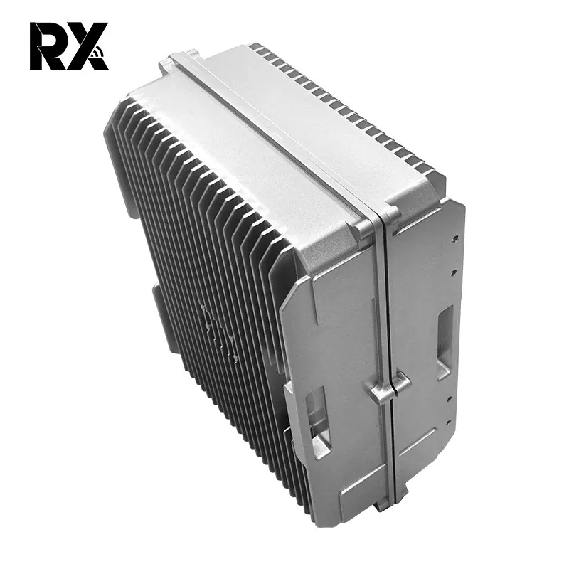 Ово алуминијумско кућиште је направљено од легуре алуминијума високог квалитета, која нуди одличан однос снаге и тежине. Ултра водоотпорно алуминијумско кућиште за ометаче сигнала дизајнирано посебно за ометаче сигнала од 50 В, кућиште користи ребра хладњака велике површине и оптимизовану унутрашњу структуру ваздушних канала. Када ометач сигнала генерише много топлоте при великој снази, кућиште од легуре алуминијума брзо преноси топлоту на ребра хладњака са својом одличном топлотном проводљивошћу.